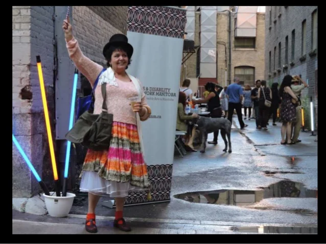 Lack of inclusiveness in 'art world' institutions leads to a cultural loss for all. A long time value of mine is for diversity. Of specific interest is the cultural wisdom of those who function outside the 'norm', most especially those defined or defining themselves as disabled. My visual and community art practices gives voice to the experience and value of those artists and audience who exist outside of the mainstream art lexicon.